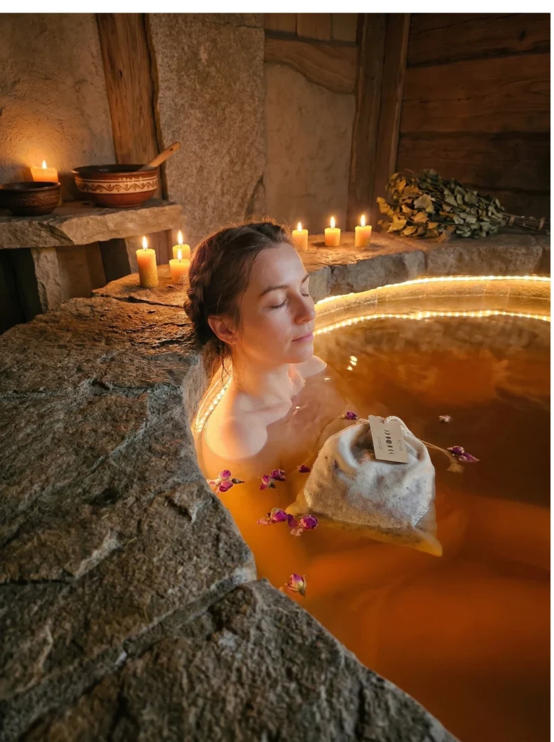 Kąpiel dla ciała – rozluźnia mięśnie, pielęgnuje skórę i włosy odżywiając je naturalnymi składnikami.