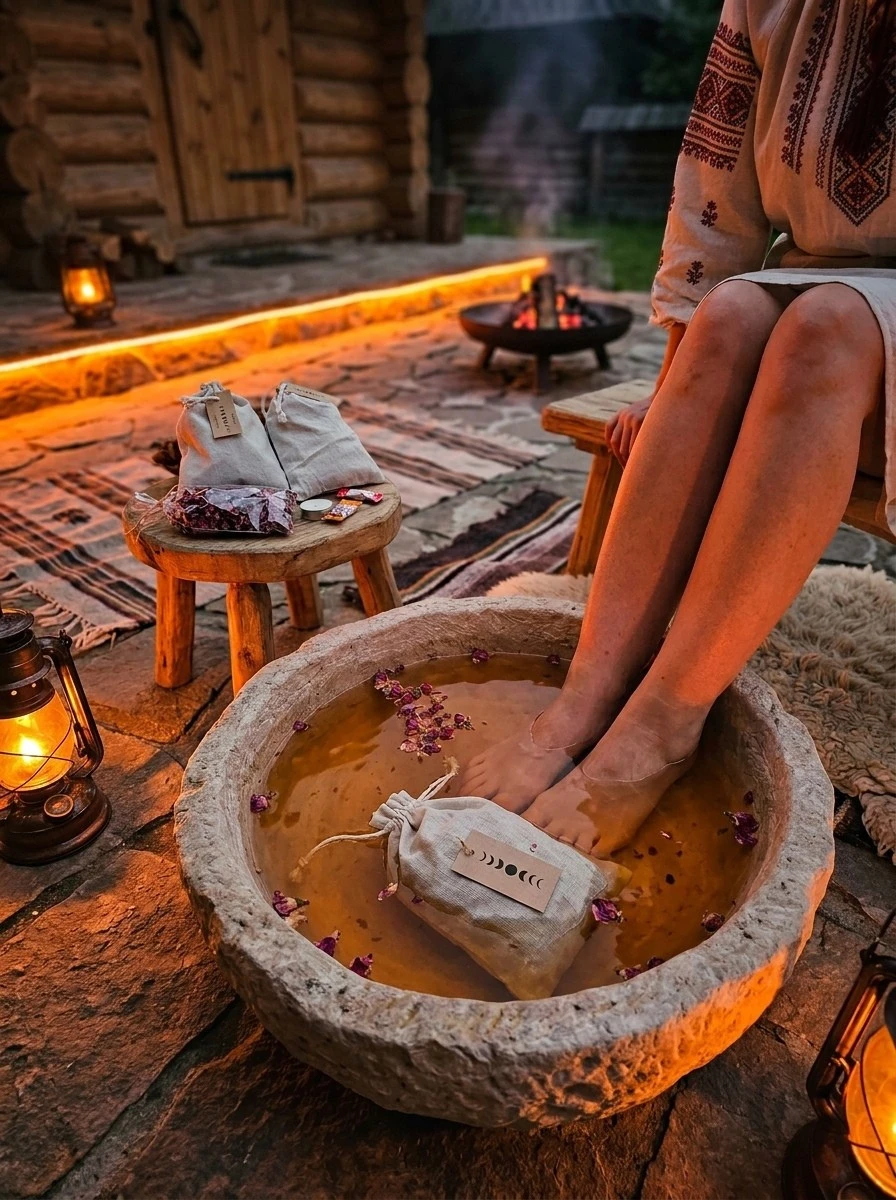 Kąpiel dla stóp – pobudza naczynka i krążenie pomagając z problemem zimnych stóp oraz rozgrzewa całe ciało.