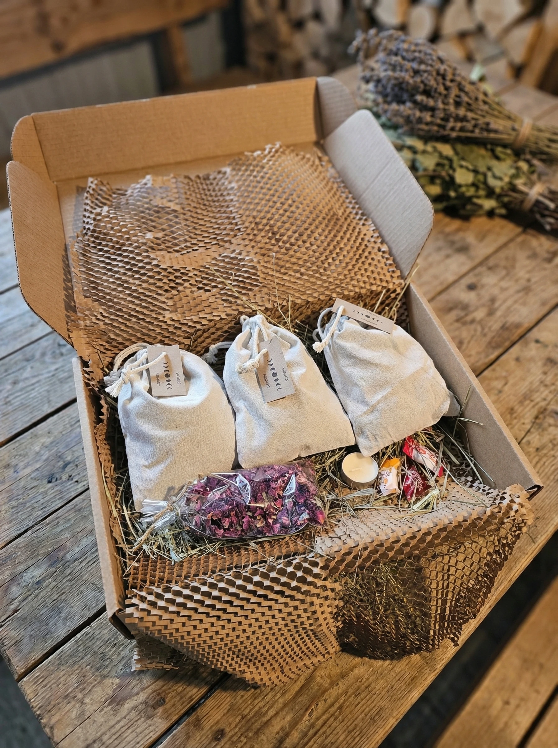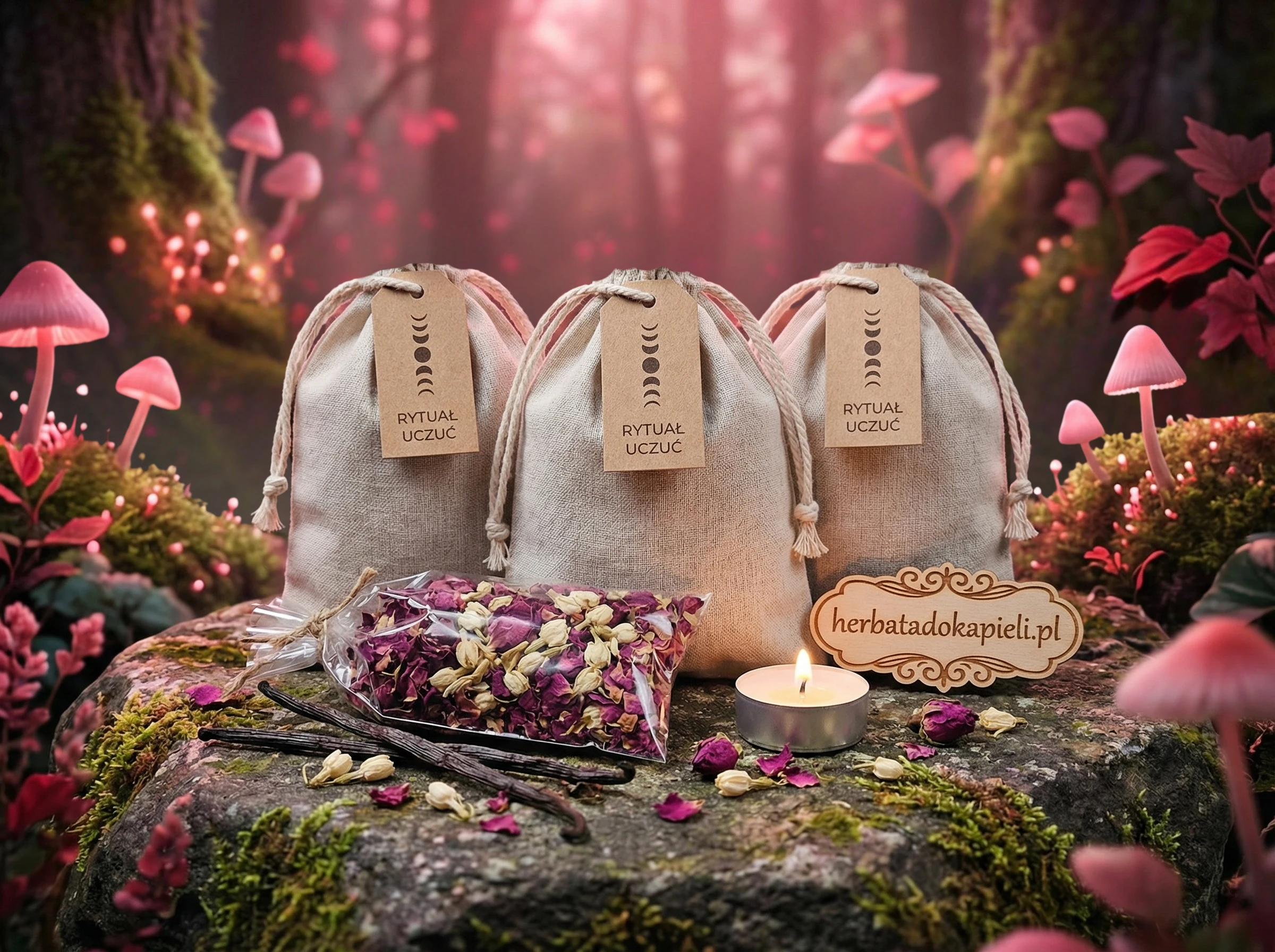 Trzy ręcznie przygotowane woreczki wypełnione różą, jaśminem, wanilią i lnem tworzą zmysłowy rytuał sprzyjający wyciszeniu i budowaniu bliskości. Zapachy kwiatów i słodycz wanilii wprowadzają atmosferę czułości.